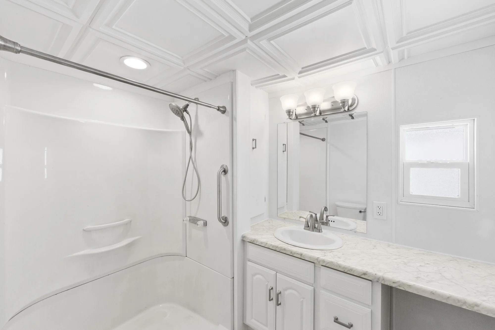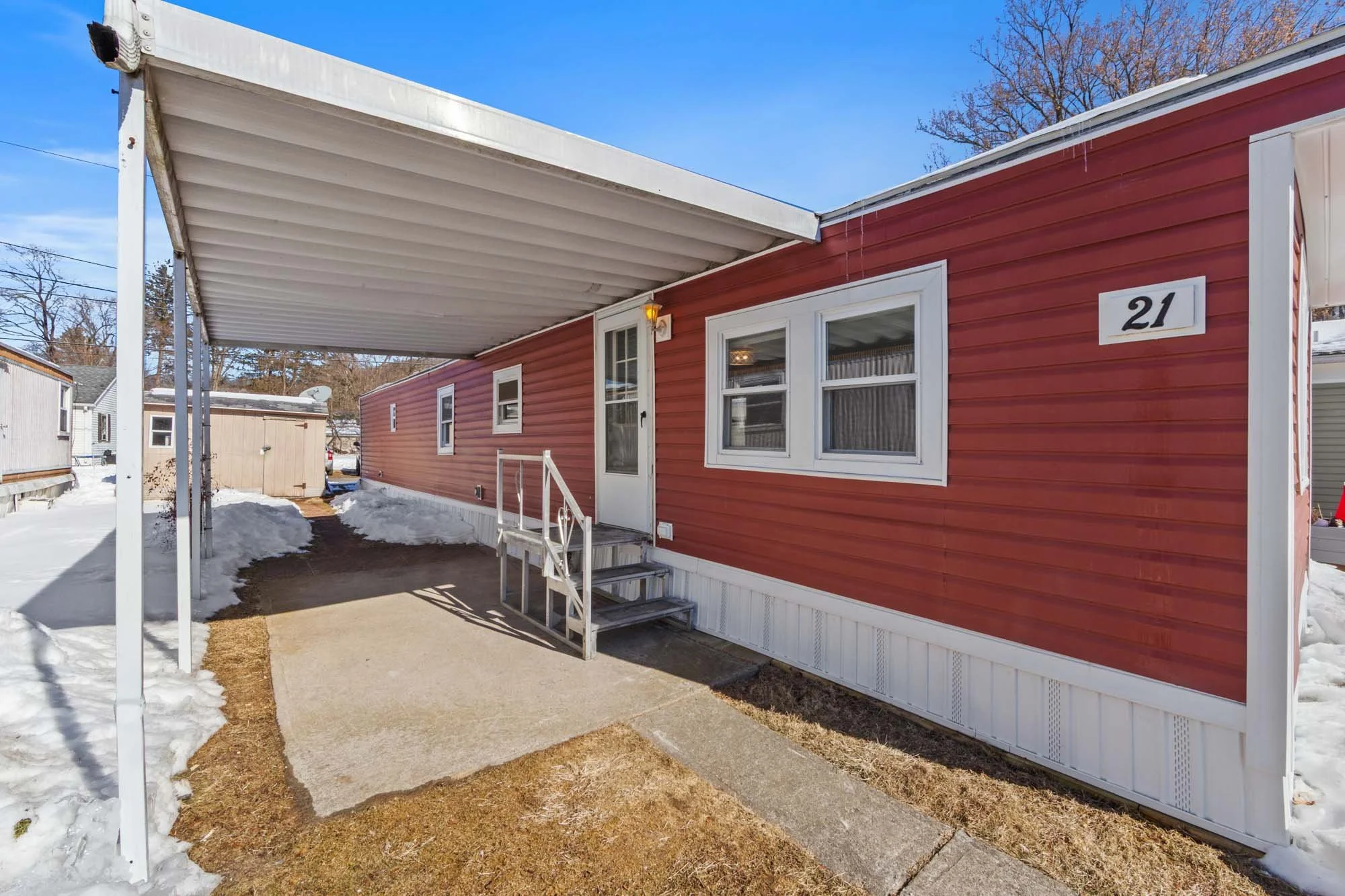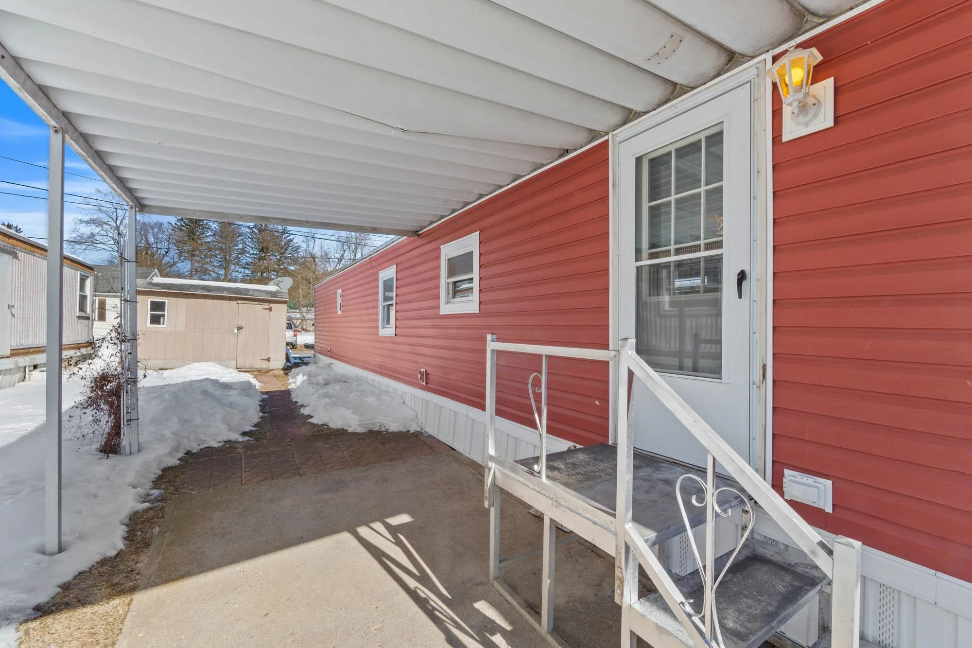 Recent improvements include PEX plumbing, upgraded insulation (R-19 floors/ceiling, R-10 walls), a sealed underbelly, a 2024 torch-down bitumen roof, updated gun-fired oil furnace with a 7-day programmable thermostat, and an exterior 30-amp generator plug. Outside, enjoy Canyon Red vinyl siding with white trim, new vented skirting, a covered concrete patio under a metal canopy, and a 5x8 shed with shelving, workbench, and cabinets. Lot rent includes cold water, sewer, and NJ taxes; homeowner pays heating oil, electric, and internet/TV.
