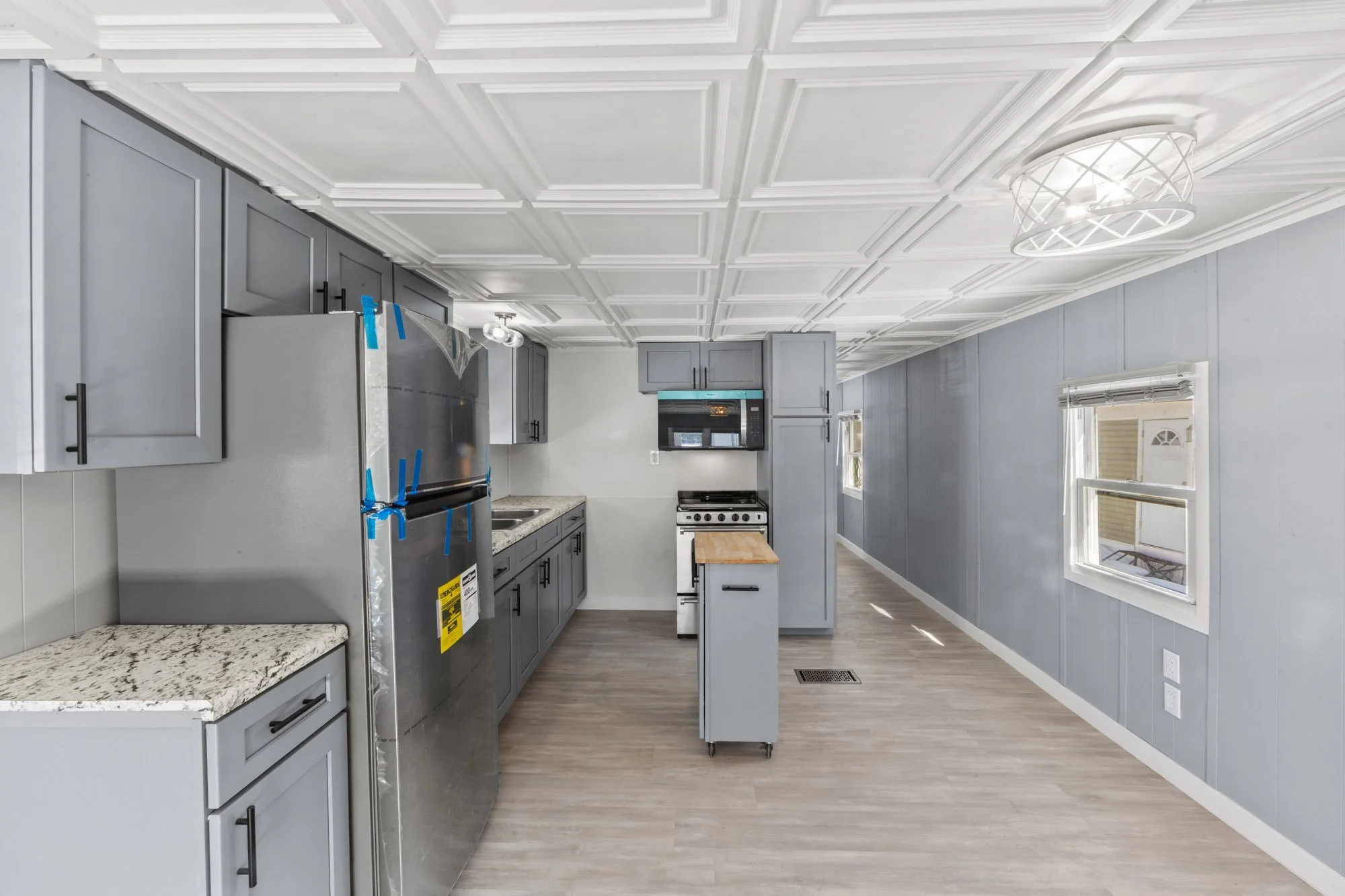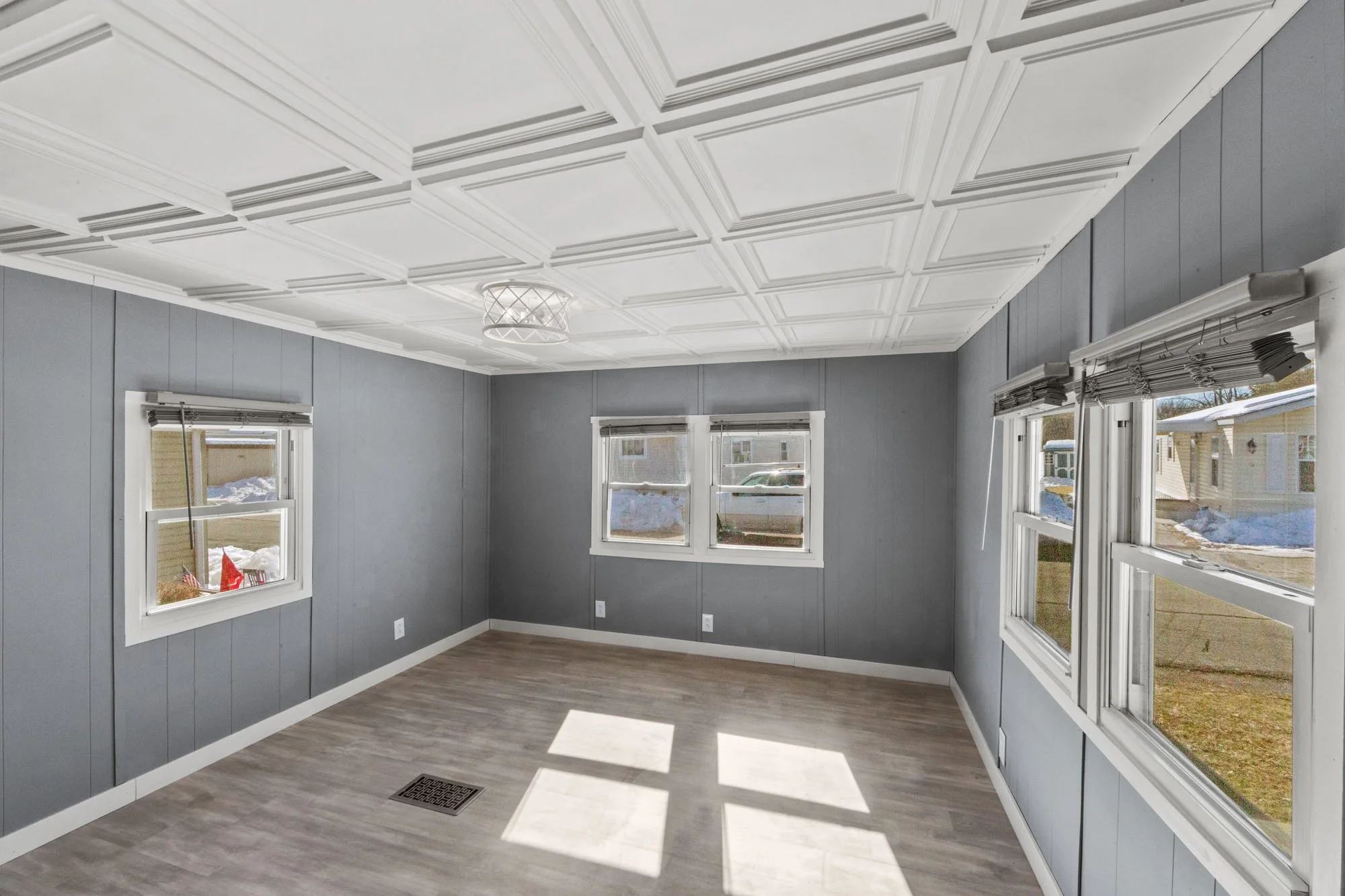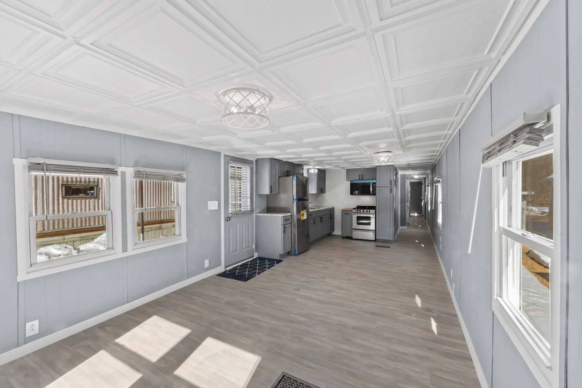 Set on a high bank of the Delaware River, this completely renovated 2-bedroom, 1-bath manufactured home offers turnkey living in Riverside Mobile Home Park with a warm barn-chic interior and major system upgrades. The bright open-concept living/dining/kitchen layout features Whitewashed Barn Oak laminate flooring, raised-panel ceilings, new lighting, solid wood shaker doors and baseboards, and double-pane double-hung windows with matching 2-inch blinds.