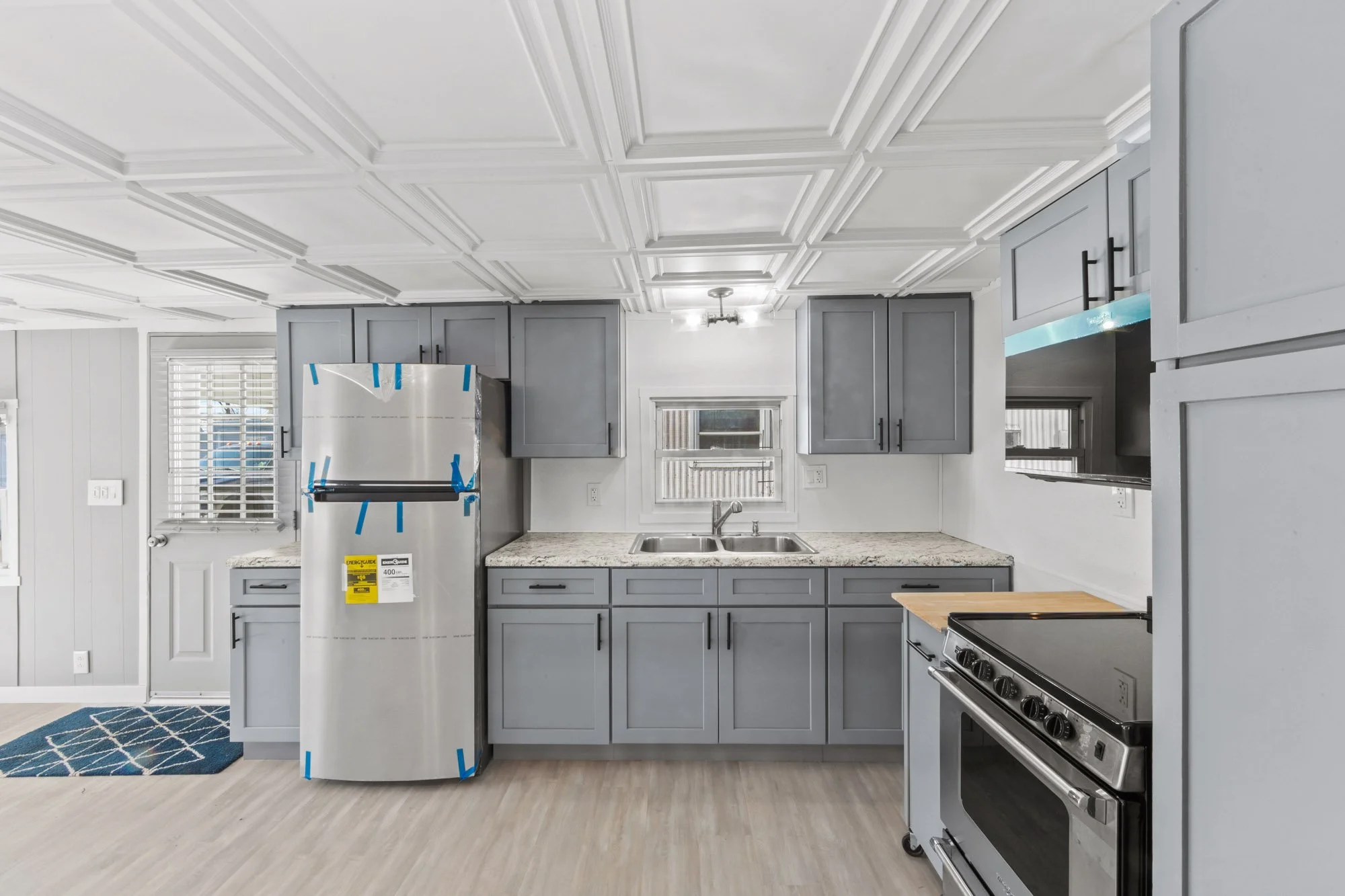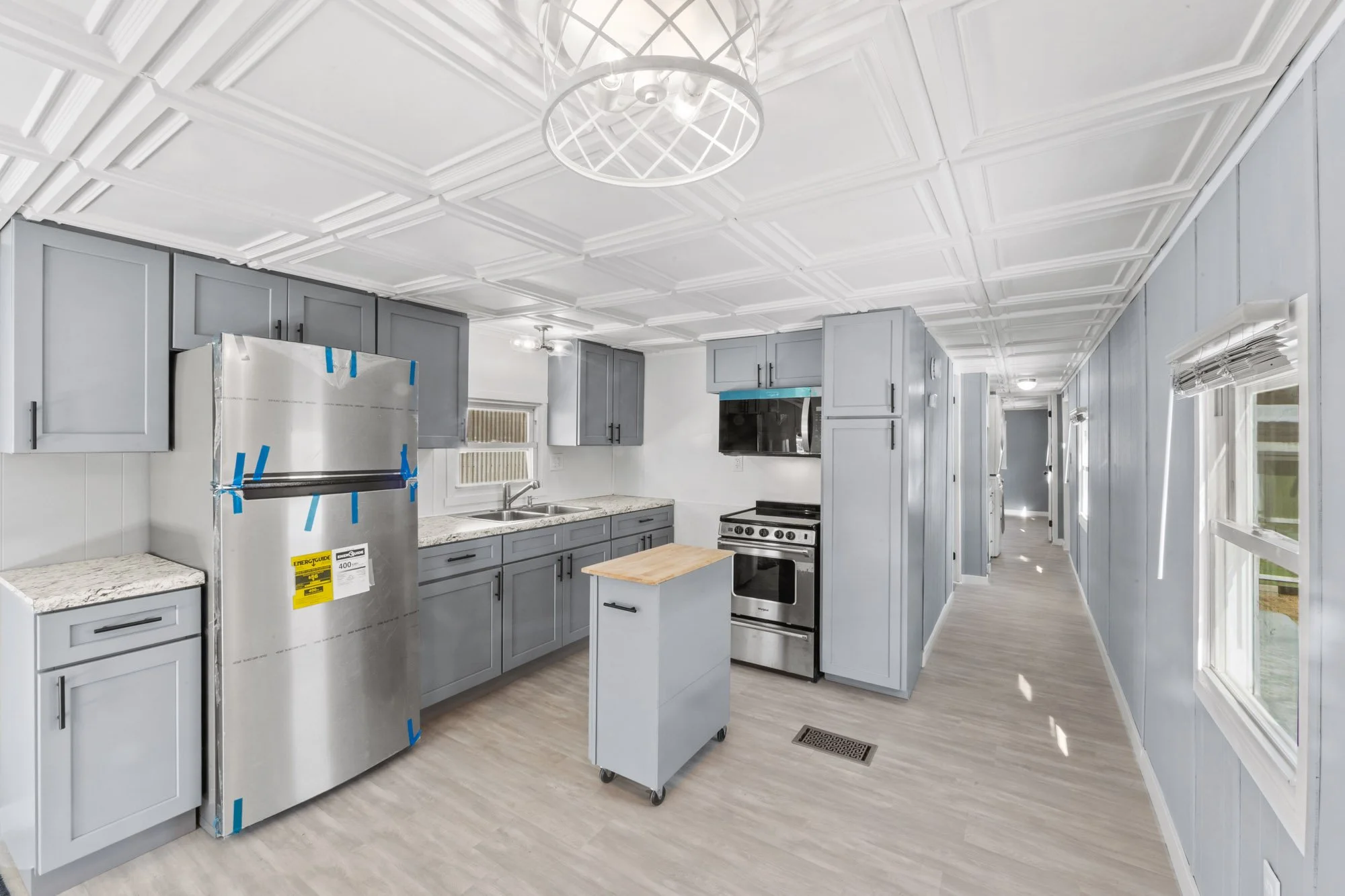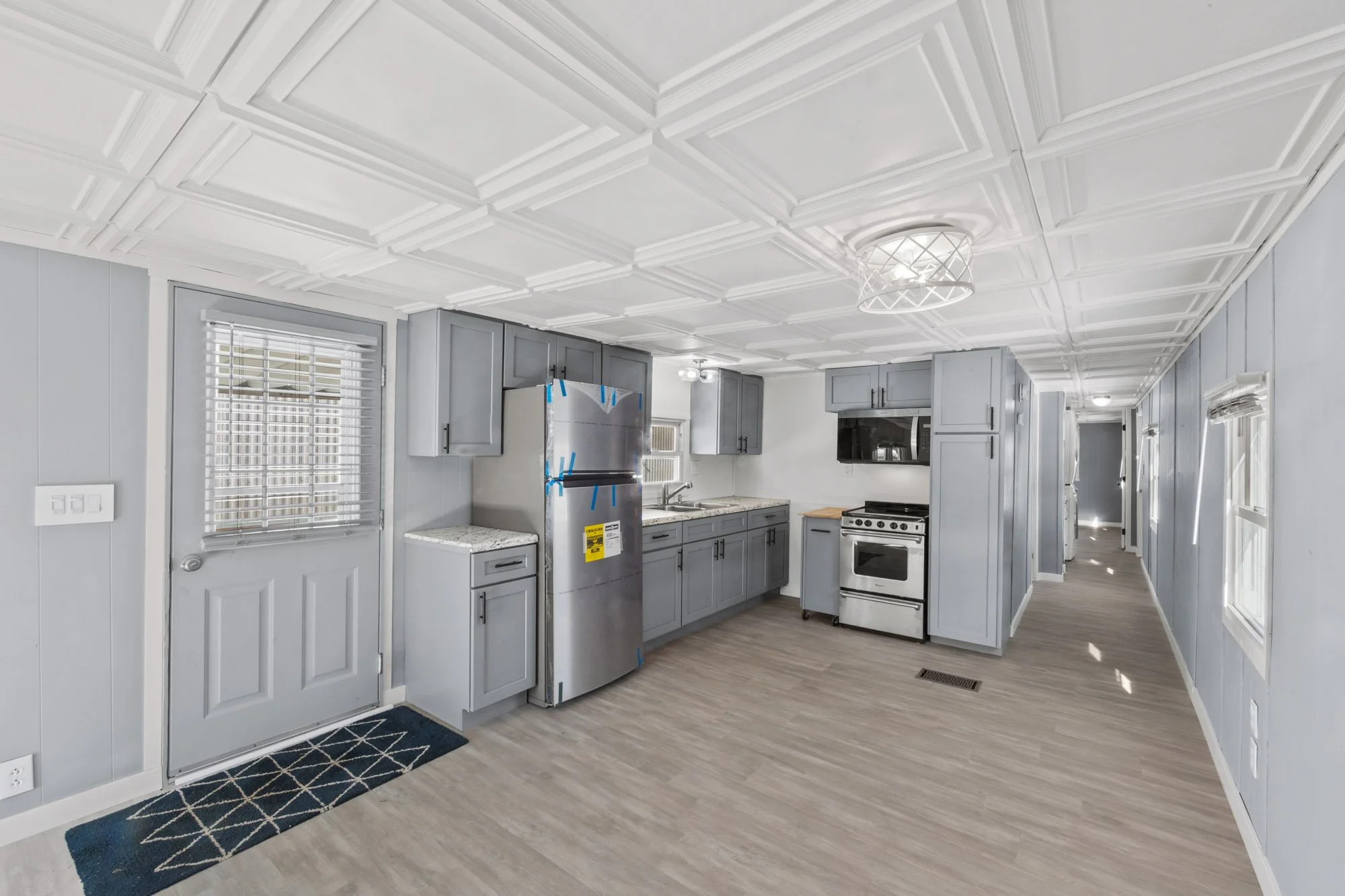 Set on a high bank of the Delaware River, this completely renovated 2-bedroom, 1-bath manufactured home offers turnkey living in Riverside Mobile Home Park with a warm barn-chic interior and major system upgrades. The bright open-concept living/dining/kitchen layout features Whitewashed Barn Oak laminate flooring, raised-panel ceilings, new lighting, solid wood shaker doors and baseboards, and double-pane double-hung windows with matching 2-inch blinds.
