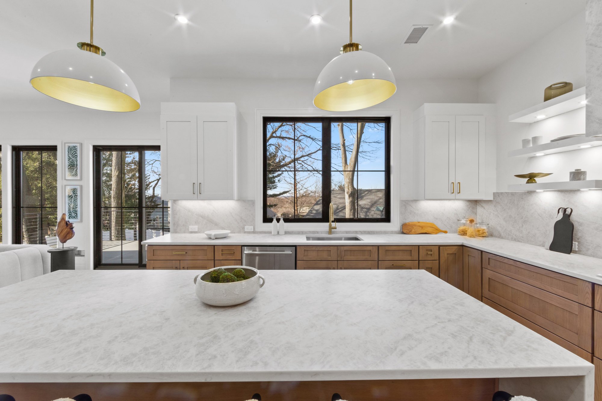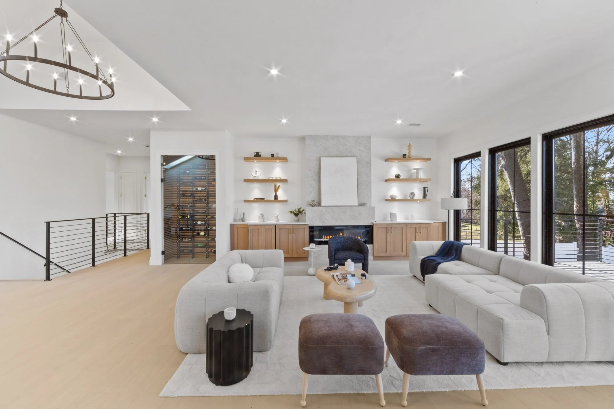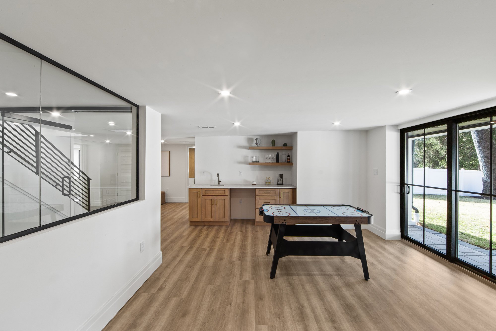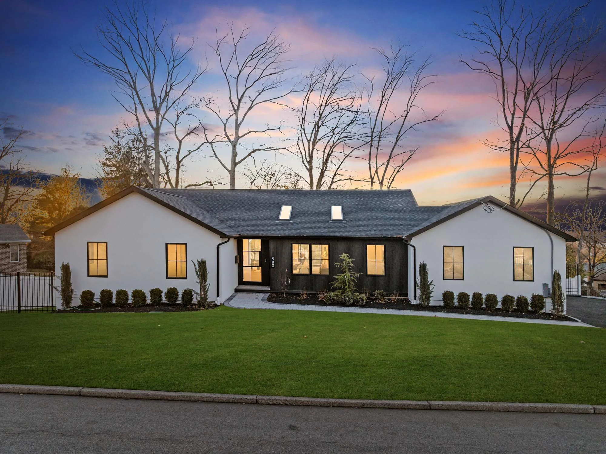 MAGNIFICENT MODERN RANCH/ FARMHOUSE. ESSENTIALLY NEW CONSTRUCTION ON EXISTING FOUNDATION AND FRAMING. ALL NEW SYSTEMS, FINISHINGS AND EXPANDED LAYOUT. LARGE OPEN LIVING AREA WITH CATH. CEILINGS, FPLC, AND SKYLIGHTS, GLASS WINE WALL, BEVERAGE CENTER, SGD TO LARGE DECK. KITCHEN WITH CENTER ISLAND, TAJ MAJAL COUNTERS AND BACK SPLASH, THERMADOR APPLIANCES. LOWER LEVEL WITH 2 BRS. 2 BATHS, THEATER, GLASS ENCLOSED GYM, REC. ROOM, WITH SGD TO COVERED LANAI AREA WITH PATIO. FIRE PIT, HOT TUB, LOUNGE/TV AREA. 2 CAR GARAGE WITH EPOXY FINISH, AND DRIVEWAY FOR 5-6 CARS. APROX. 4,500 SQ.FT.