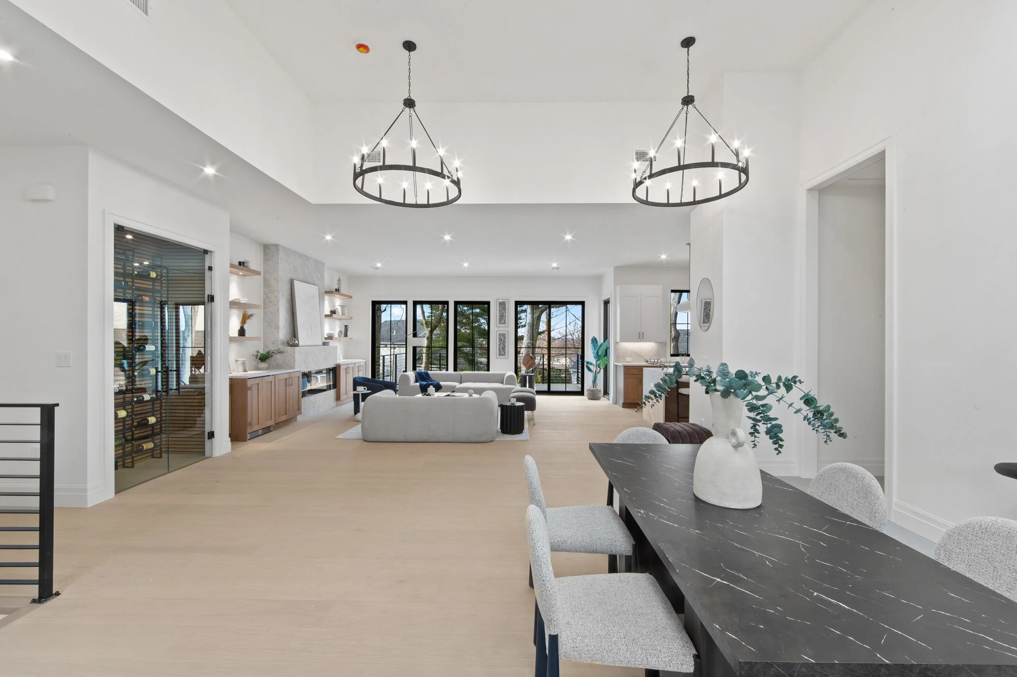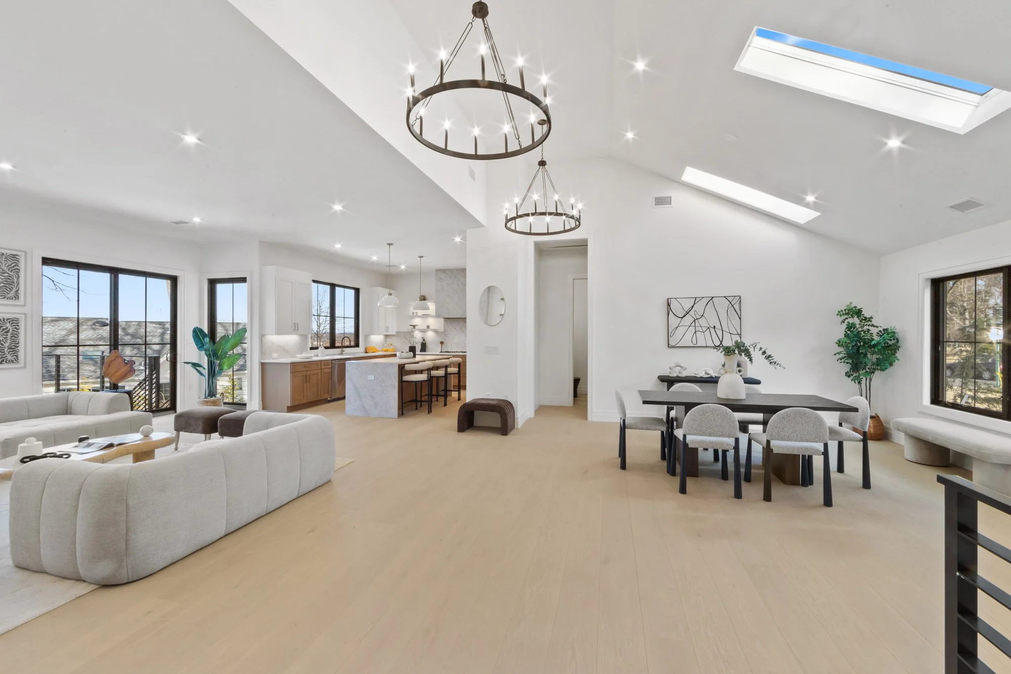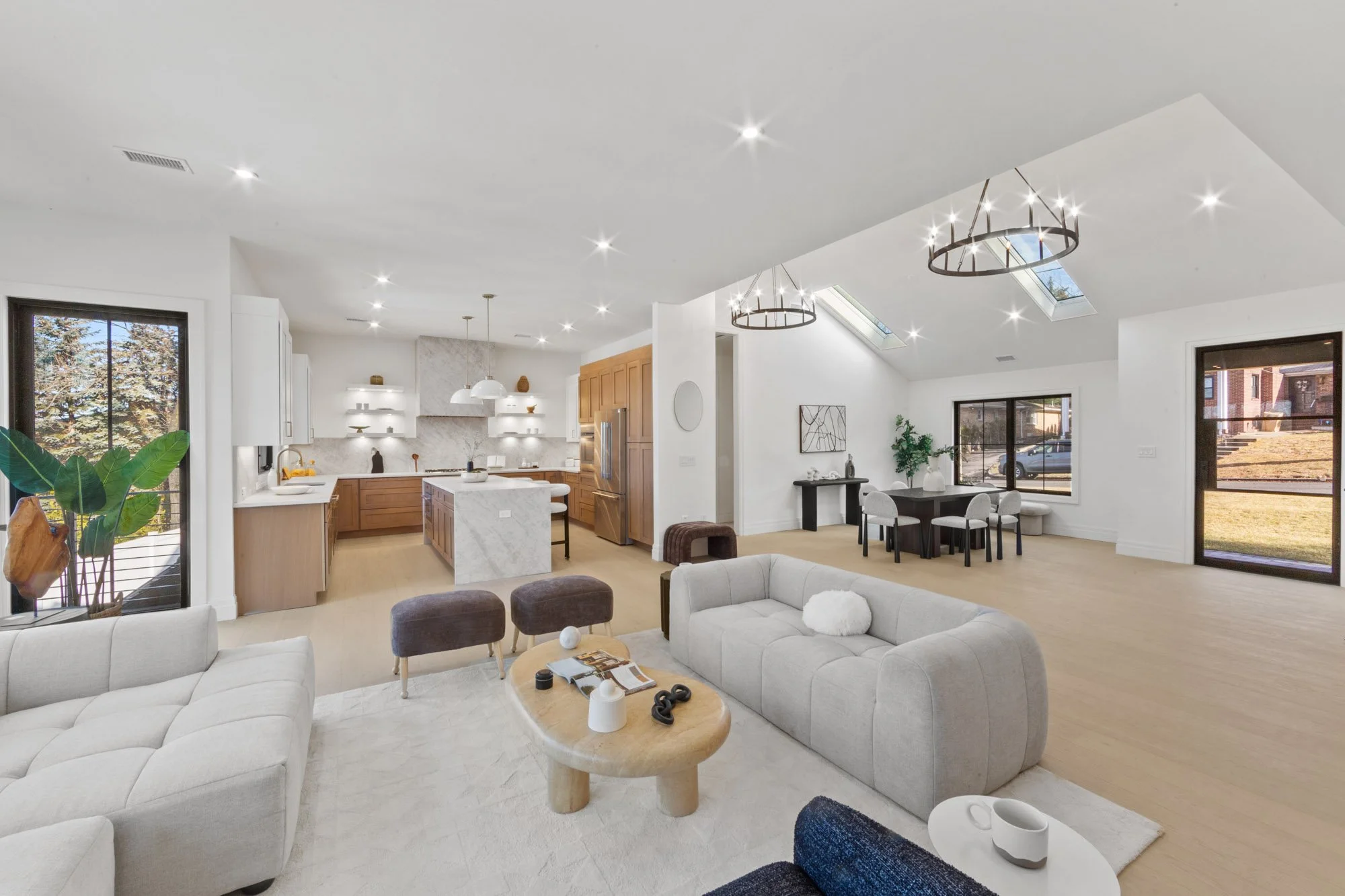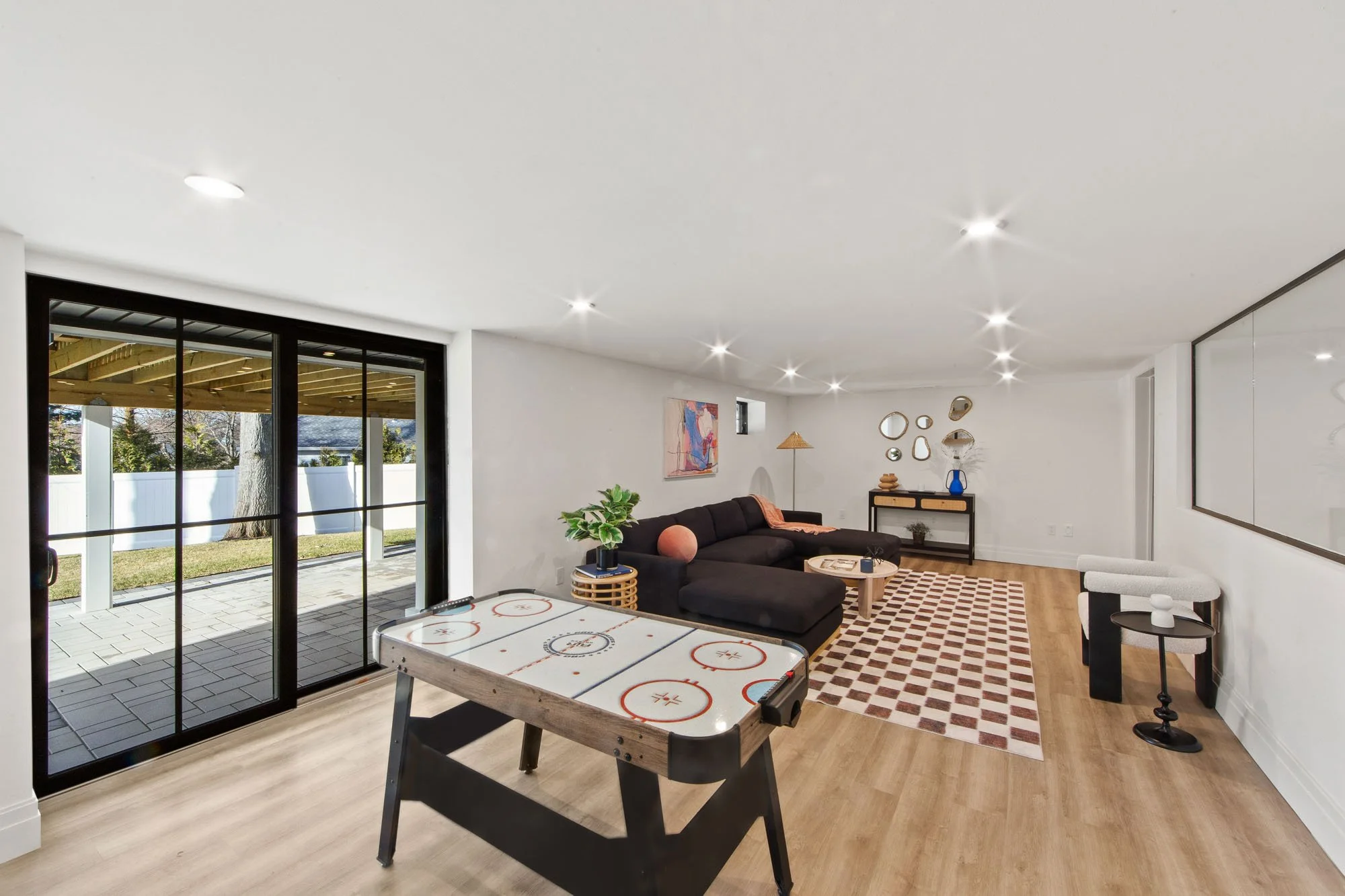 MAGNIFICENT MODERN RANCH/ FARMHOUSE. ESSENTIALLY NEW CONSTRUCTION ON EXISTING FOUNDATION AND FRAMING. ALL NEW SYSTEMS, FINISHINGS AND EXPANDED LAYOUT. LARGE OPEN LIVING AREA WITH CATH. CEILINGS, FPLC, AND SKYLIGHTS, GLASS WINE WALL, BEVERAGE CENTER, SGD TO LARGE DECK. KITCHEN WITH CENTER ISLAND, TAJ MAJAL COUNTERS AND BACK SPLASH, THERMADOR APPLIANCES. LOWER LEVEL WITH 2 BRS. 2 BATHS, THEATER, GLASS ENCLOSED GYM, REC. ROOM, WITH SGD TO COVERED LANAI AREA WITH PATIO. FIRE PIT, HOT TUB, LOUNGE/TV AREA. 2 CAR GARAGE WITH EPOXY FINISH, AND DRIVEWAY FOR 5-6 CARS. APROX. 4,500 SQ.FT.