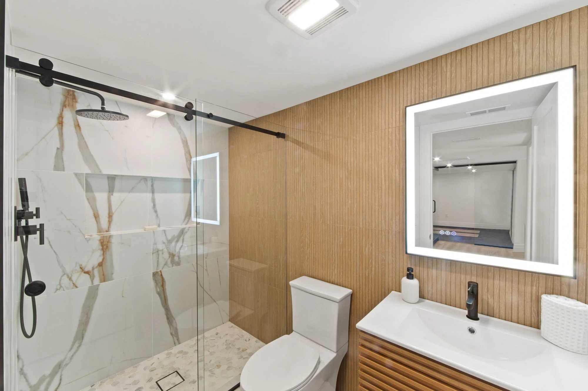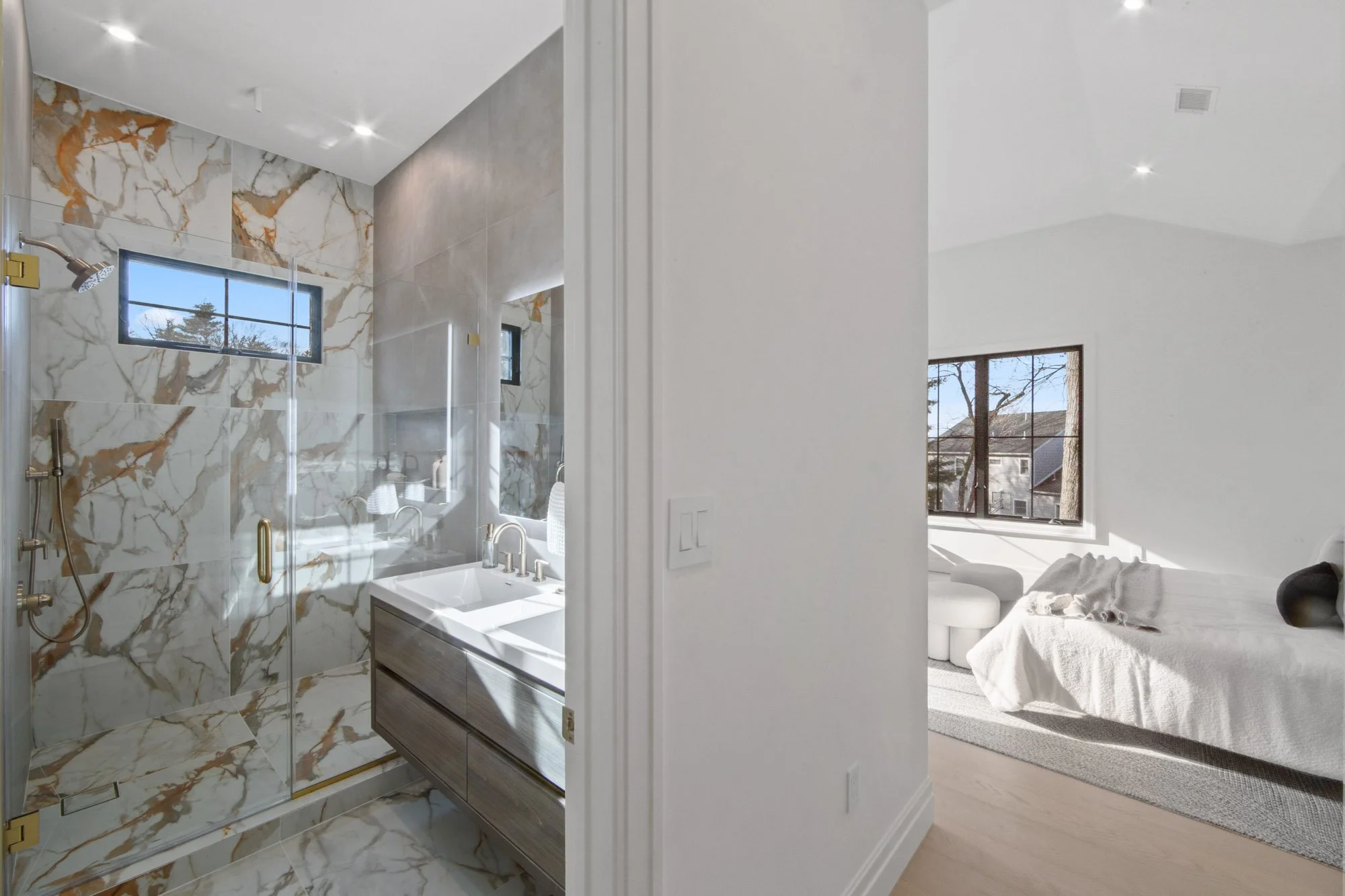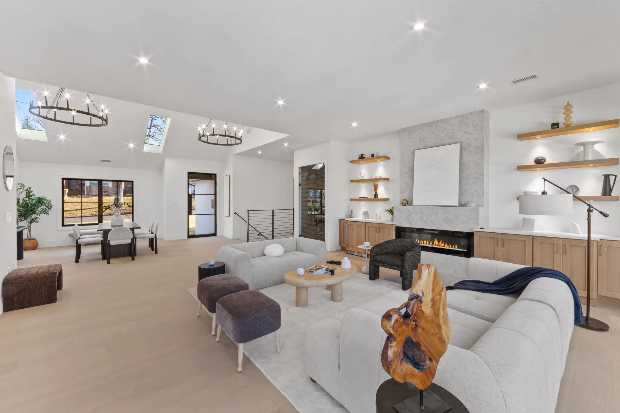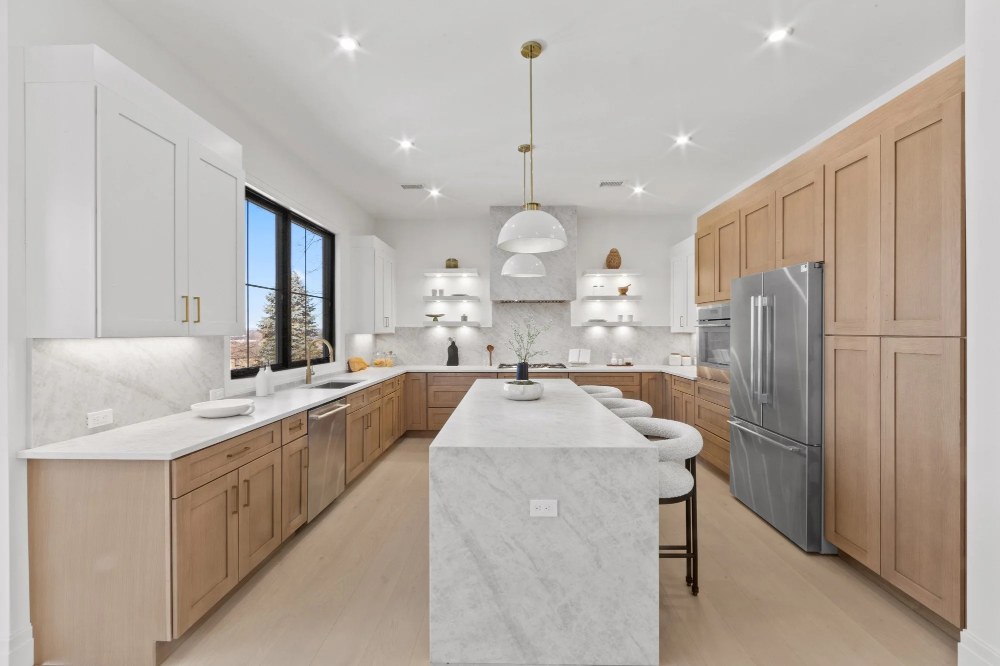 MAGNIFICENT MODERN RANCH/ FARMHOUSE. ESSENTIALLY NEW CONSTRUCTION ON EXISTING FOUNDATION AND FRAMING. ALL NEW SYSTEMS, FINISHINGS AND EXPANDED LAYOUT. LARGE OPEN LIVING AREA WITH CATH. CEILINGS, FPLC, AND SKYLIGHTS, GLASS WINE WALL, BEVERAGE CENTER, SGD TO LARGE DECK. KITCHEN WITH CENTER ISLAND, TAJ MAJAL COUNTERS AND BACK SPLASH, THERMADOR APPLIANCES. LOWER LEVEL WITH 2 BRS. 2 BATHS, THEATER, GLASS ENCLOSED GYM, REC. ROOM, WITH SGD TO COVERED LANAI AREA WITH PATIO. FIRE PIT, HOT TUB, LOUNGE/TV AREA. 2 CAR GARAGE WITH EPOXY FINISH, AND DRIVEWAY FOR 5-6 CARS. APROX. 4,500 SQ.FT.